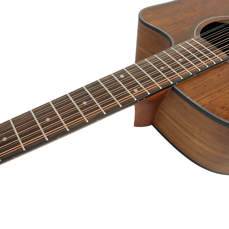 "Crafted with all walnut top, back&side, this 12-string acoustic guitar delivers warm, resonant tones with excellent low-end depth—popular among folk, rock, and singer-songwriter genres. The uniform walnut grain adds high-end visual appeal, boosting retail resale value for your business. For bulk all walnut 12-string guitar orders, we maintain strict material selection to ensure consistent density and resonance across every unit, avoiding tone discrepancies that affect professional use."